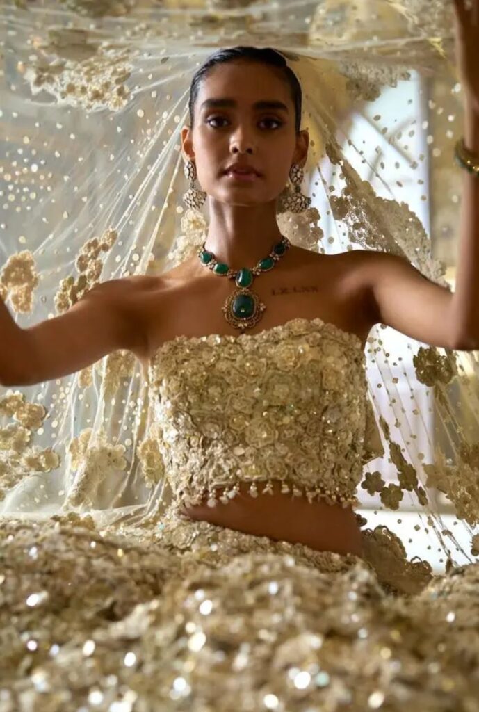 - Dramatic Details: Include texture, tassels, or blouse latkans on the sleeves to elevate bridal wear.