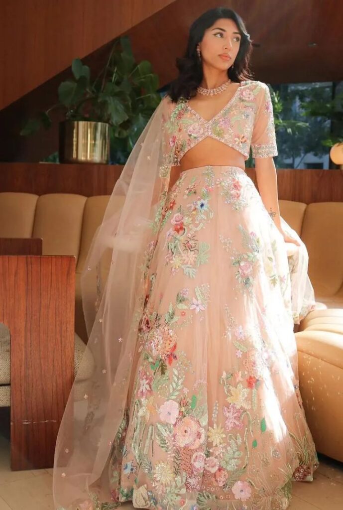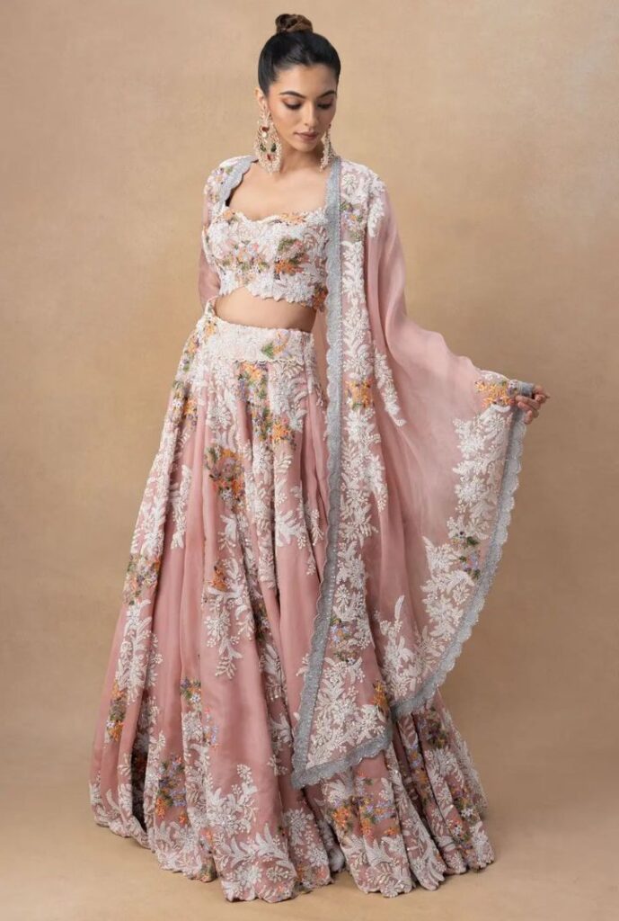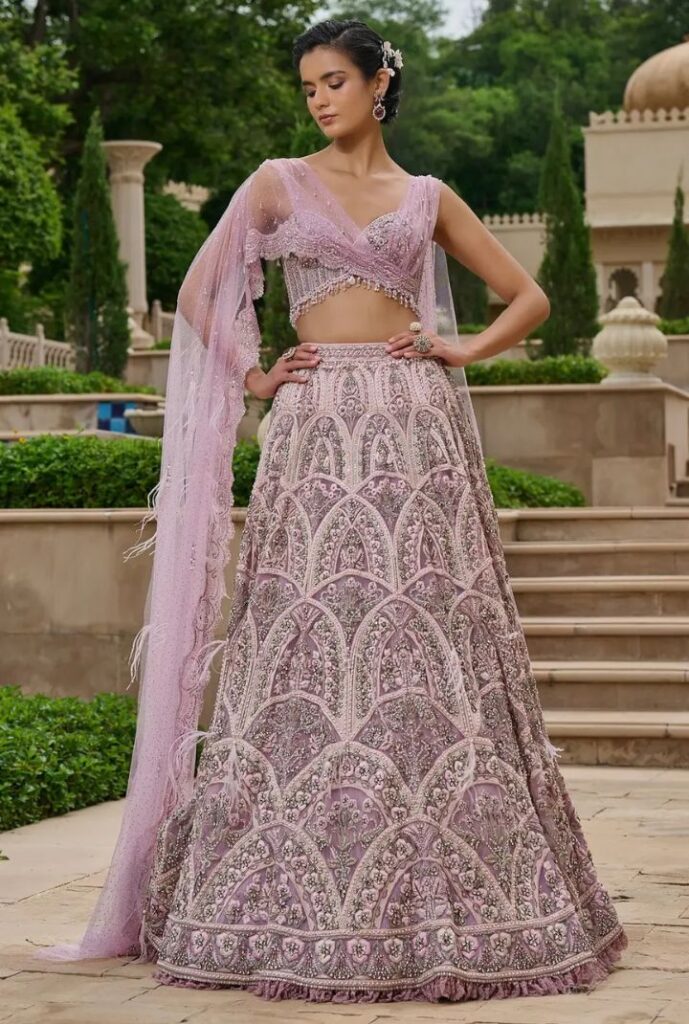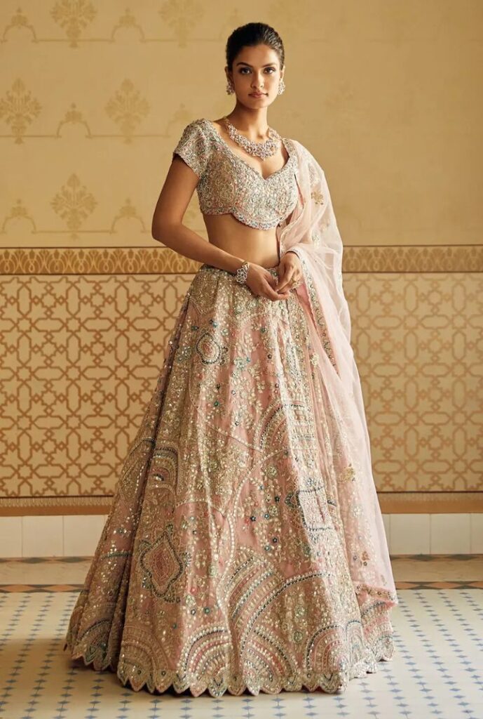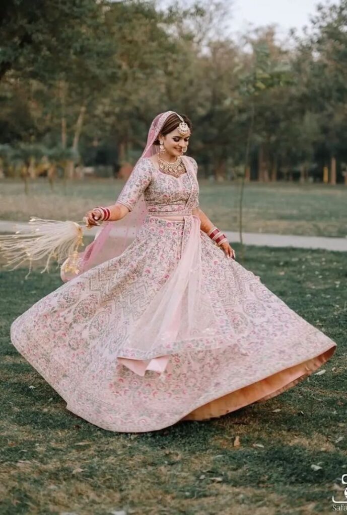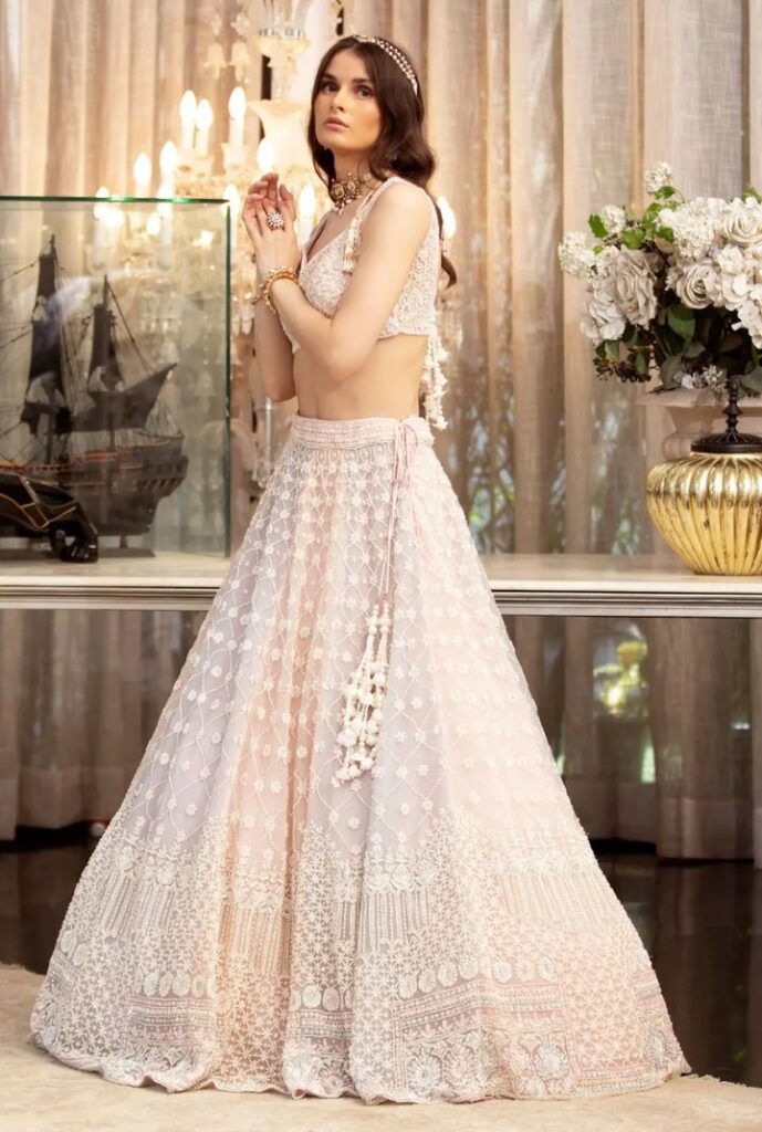 - Keep embroidery and embellishments minimal to maintain the softness of light pink lehengas.