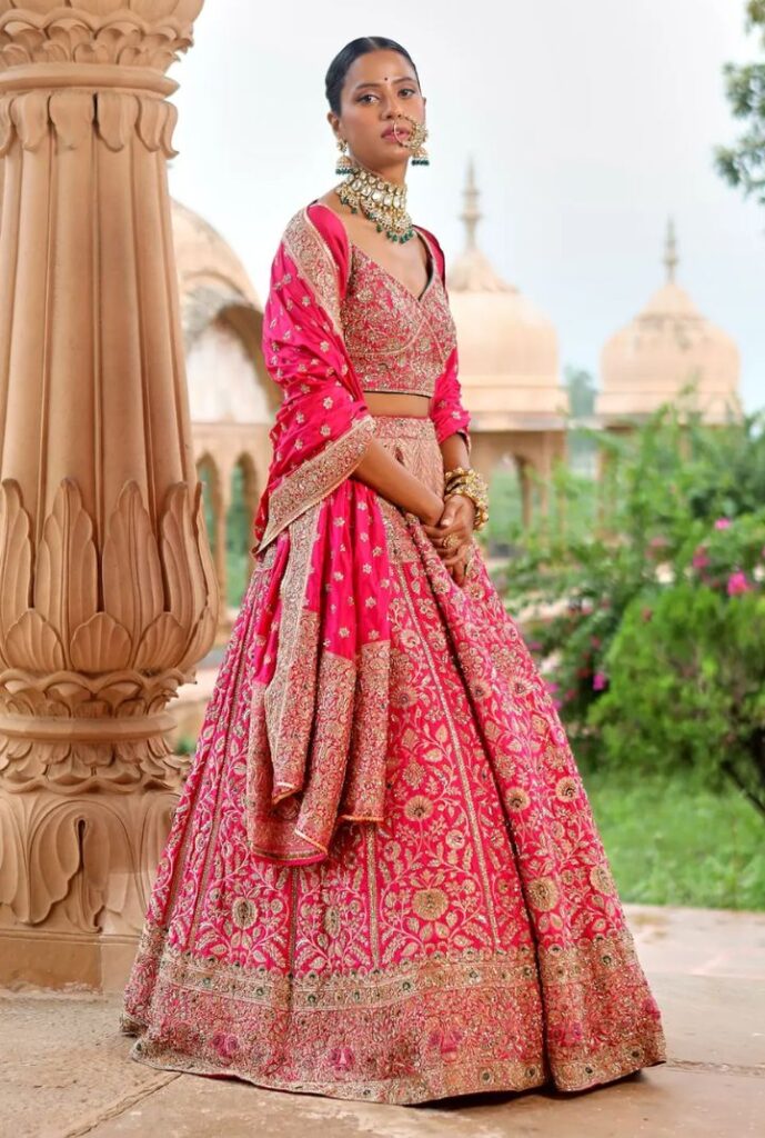 Hot pink bridal lehengas are now a big trend in wedding fashion. Designers are adding their own touch to this bright and vibrant shade. If you love making a statement on your wedding day, a hot pink lehenga is perfect. Here’s how to wear it beautifully: