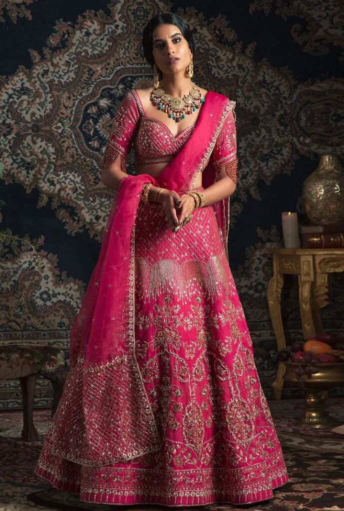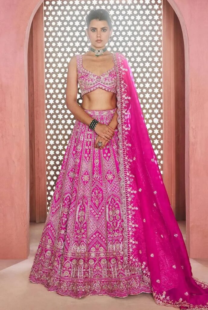 If you want something different from the usual red bridal lehenga, a dark pink lehenga is a great choice. Dark pink lehengas are more structured and often have detailed embroidery and embellishments, making them look beautiful in photos. Here are some tips and ideas to help you pick the perfect dark pink lehenga: