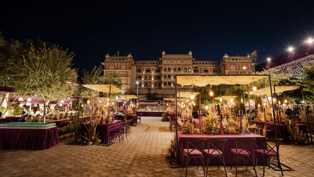 Fairmont Jaipur is one of the most famous luxury wedding hotels in Jaipur, known for its royal look and grand design. Inspired by Mughal and Rajputana architecture, this hotel is perfect for large destination weddings that need spacious venues and a royal setting. It offers a true palace-style wedding experience in Jaipur.