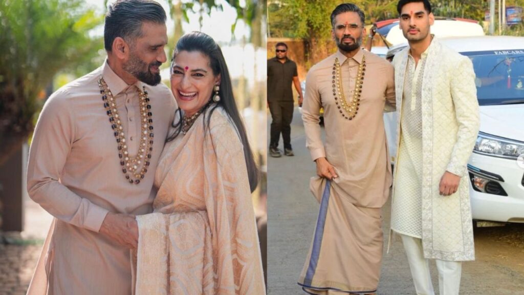 Nothing stands out more than an outfit that feels completely authentic and deeply rooted. Instead of going for a conventional sherwani, this look embraces tradition in its purest form — simple, elegant, and profoundly cultural. Inspired by Suniel Shetty, who wore a kurta with a lungi and a rudraksha mala at his daughter’s wedding, creating a grounded, powerful, and refreshingly different impression.