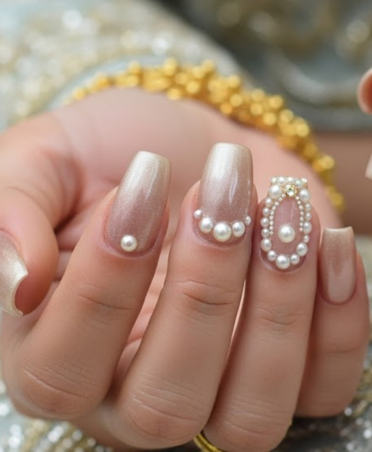 Chrome, Pearl & Glazed Donut Nails for Modern Brides