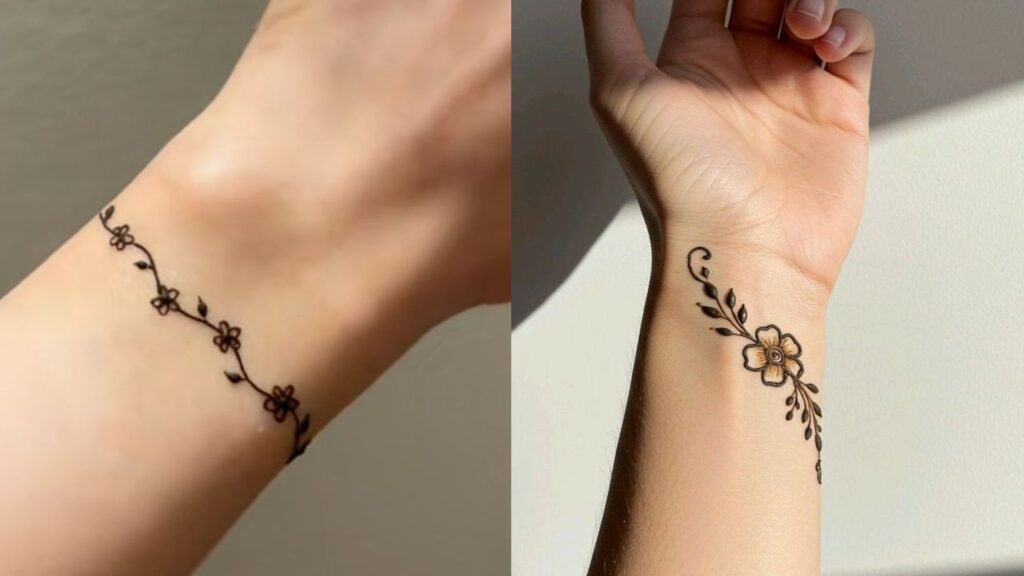 Sometimes less is more. A single graceful vine flowing along the wrist with just a few leaves creates an elegant, minimalist look. The secret is keeping the spacing wide and airy — this gives the design a sophisticated and delicate feel.