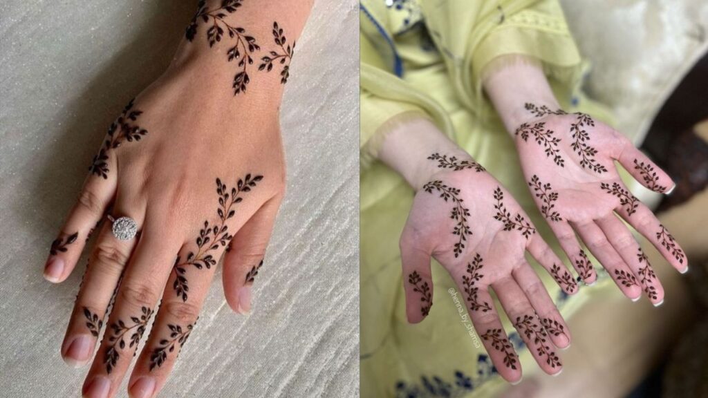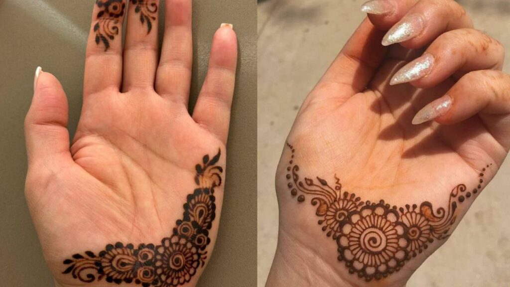 Corner designs are perfect for beginners because the natural edge of your palm helps guide you. Begin with a flower in the corner and let gentle vines trail toward the center. It creates a beautiful “growing” effect that looks organic and effortless.