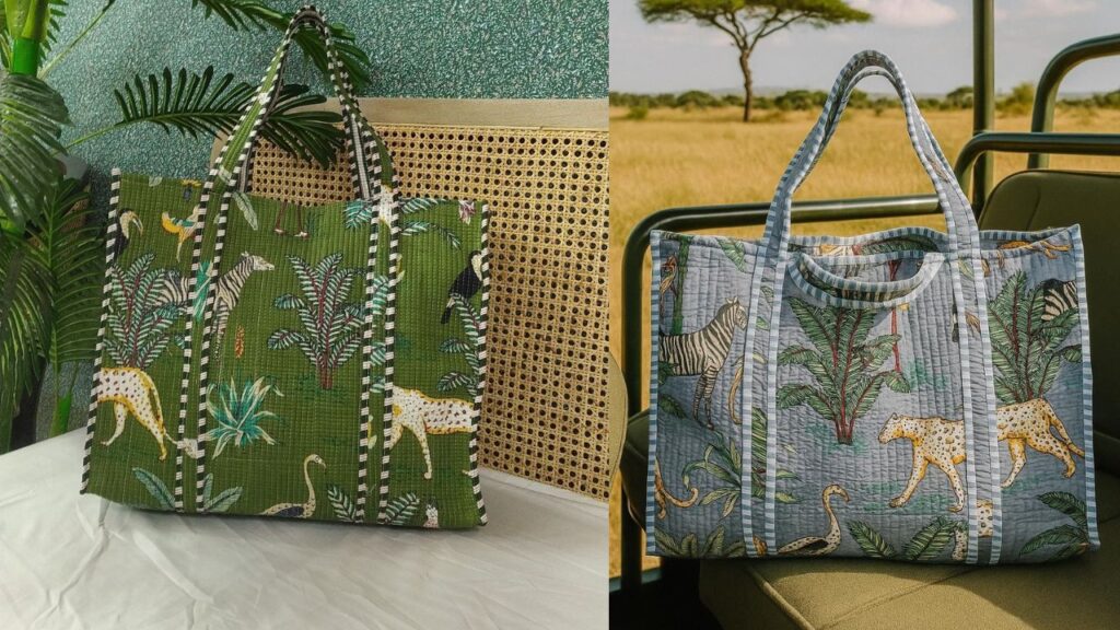 Handblock-printed quilted totes—beautiful and practical all at once.